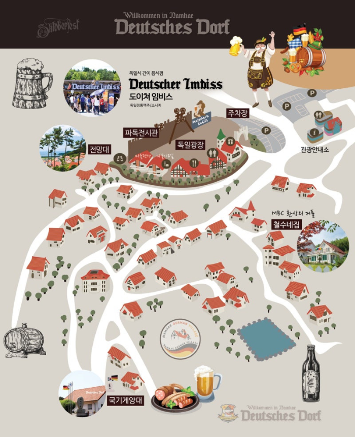 마을에서는 독일의 전통 문화와 관련된 다양한 행사도 열립니다. 매년 여름에는 독일 맥주 축제가 열리며, 이때는 많은 관광객들이 모여 독일의 문화를 체험합니다.