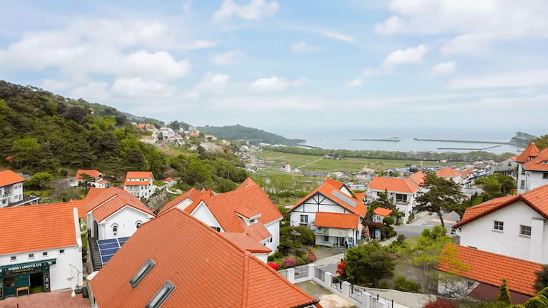 남해 독일 마을은 독일의 전통적인 건축 양식을 따르는 집들이 줄지어 있는 아름다운 마을입니다. 이곳은 푸른 바다와 푸른 하늘, 그리고 아기자기한 집들이 어우러져 그림 같은 풍경을 만들어냅니다. 특히, 빨간 지붕의 집들이 푸른 자연과 조화를 이루어 많은 관광객들이 찾는 명소로 자리 잡고 있습니다.