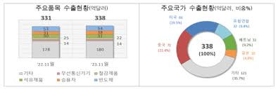 자동차 수출도 증가세를 보이고 있으며, 20231분기에는 8.2% 증가했습니다. 이는 미국 내 전기차 수요 증가와 관련이 있습니다.