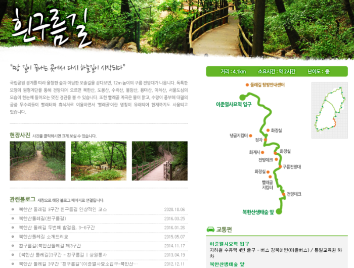 흰구름길은 북한산의 아름다움을 만끽할 수 있는 최적의 장소입니다. 가족, 친구와 함께 소중한 추억을 만들 수 있는 이곳에서 자연과 함께 힐링하는 시간을 가져보시기 바랍니다. 또한, 주변의 다른 코스와 연계하여 더 긴 하이킹을 즐기는 것도 좋은 방법입니다. 북한산 둘레길을 통해 자연의 아름다움을 느끼고, 건강한 라이프스타일을 즐기시기 바랍니다.
