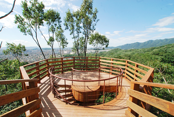 흰구름길을 걷다 보면 여러 가지 경관 포인트를 만날 수 있습니다. 특히 구름전망대는 이 코스의 하이라이트로, 12m 높이의 전망대에서 바라보는 경치는 정말 장관입니다. 전망대에 오르면 시원한 바람과 함께 주변의 아름다운 풍경을 감상할 수 있습니다.