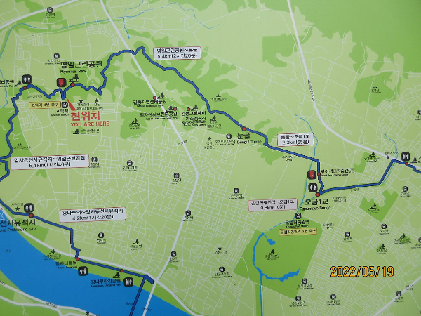 코스 중간에는 강동그린웨이 가족캠핑장, 일자산 해맞이공원, 방이동 생태경관보전지구 등 다양한 명소가 있습니다. 특히, 일자산 해맞이공원은 일출을 감상하기에 최적의 장소로 알려져 있습니다.
