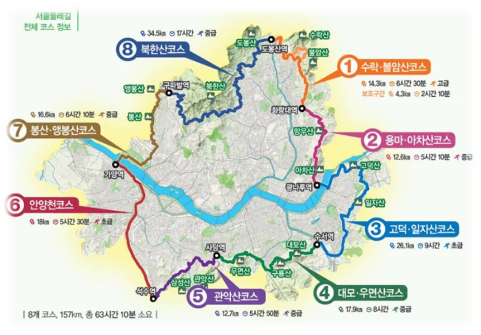 용마~아차산코스는 중급 난이도로, 초보자보다는 어느 정도 체력이 있는 분들에게 적합해요. 이 코스는 묵동천, 망우산, 용마산, 아차산의 산 능선을 따라 이어져 있어요. 특히, 이곳은 서울 둘레길 중에서 전망이 가장 뛰어난 코스 중 하나로 알려져 있어요.