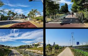 자전거길을 이용할 때 몇 가지 유의사항이 있습니다. 먼저, 자전거를 타기 전에는 헬멧을 착용하는 것이 안전합니다. 또한, 자전거 이용 중에는 주변의 보행자와 차량에 주의해야 하며, 지정된 자전거 도로를 따라 주행해야 합니다. 특히, 주말이나 공휴일에는 많은 사람들이 방문하므로, 서행하며 안전하게 이동하는 것이 중요합니다.