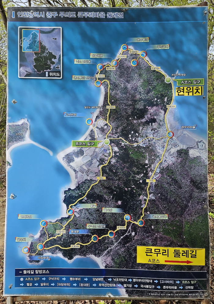 무의도 둘레길은 약 8.5km의 길이로, 도보로 약 3시간 30분 정도 소요됩니다. 이 길은 해안선을 따라 이어져 있어, 걷는 내내 아름다운 바다 경치를 감상할 수 있습니다. 또한, 다양한 해양 생물과 식물들을 관찰할 수 있어 자연을 사랑하는 이들에게 안성맞춤입니다. 둘레길은 크게 두 개의 코스로 나뉘어 있으며, 각각의 코스는 독특한 매력을 가지고 있습니다.