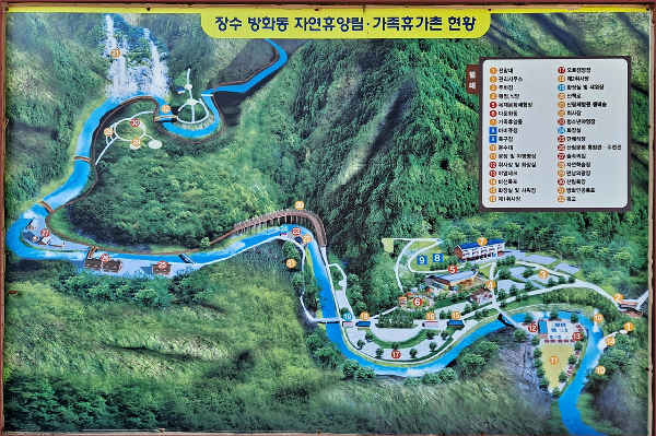 방화동 생태길은 장안산 군립공원 입구에서 시작하여 덕산계곡을 지나 방화동 가족휴가촌까지 이어지는 왕복 10킬로미터 코스입니다. 이 길은 맑은 계곡과 울창한 원시림이 어우러져 있어, 걷는 내내 자연의 아름다움을 만끽할 수 있습니다.