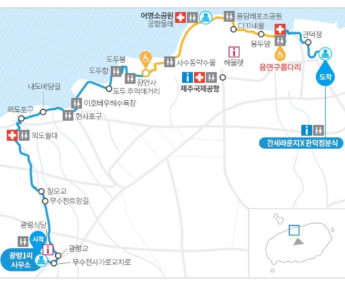 코스를 걷다 보면 다양한 볼거리가 있습니다. 특히, 바닷가를 따라 걷는 구간에서는 아름다운 해안선과 함께 시원한 바다 바람을 느낄 수 있습니다. 용두암과 이호테우 해수욕장 근처는 특히 포토존으로 유명합니다. 이곳에서 찍은 사진은 인생샷으로 남길 수 있을 것입니다.