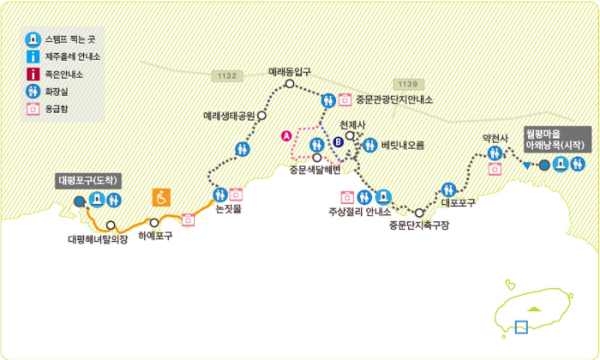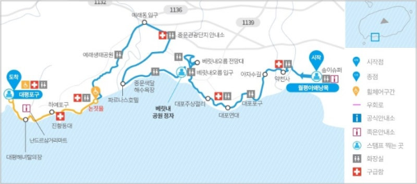 코스의 끝인 대평은 아름다운 해변과 함께 다양한 해양 활동을 즐길 수 있는 곳입니다. 대평포구에서는 신선한 해산물을 맛볼 수 있는 식당들이 많아 여행의 피로를 풀기에 좋은 장소입니다. 또한, 대평에서 바라보는 일몰은 정말 아름다워 많은 이들이 찾는 명소입니다.