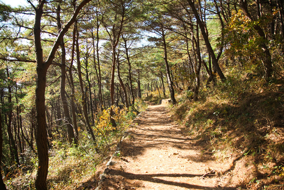 8코스는 다양한 경치를 제공하는데, 특히 산과 계곡의 아름다움이 돋보입니다.