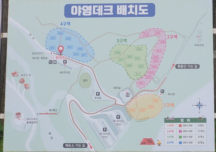 - 쓰레기 처리 : 자연을 보호하기 위해 쓰레기는 반드시 가져가야 합니다.