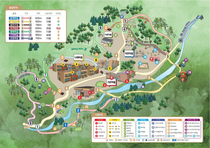 2. 놀다가길 : 이 코스는 아이들과 함께하는 가족 단위 여행에 적합합니다. 다양한 놀이 시설과 함께 자연을 즐길 수 있는 공간이 마련되어 있어 아이들이 신나게 놀 수 있습니다.