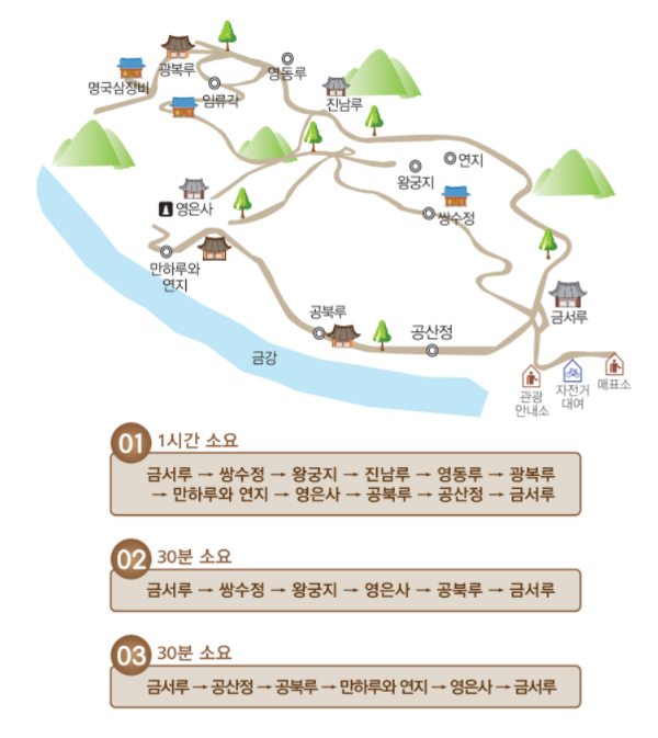 공산성길은 여러 코스로 나뉘어져 있어요. 대표적인 코스는 약 1시간 정도 소요되는 코스와 30분 정도 소요되는 짧은 코스가 있어요. 주요 명소로는 금강을 바라보며 걷는 길, 전통적인 정자와 함께하는 산책로, 그리고 역사적인 유적들이 있어요. 특히, 공산성 방문자센터에서 시작하는 코스는 많은 관광객들이 찾는 인기 코스랍니다.